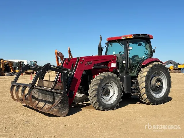 Enclosed Cab, Air Conditioner, Differential Lock, 16 Forward 16 Reverse, Partial Power Shift, Left Hand Reverser, 139 hp Engine, 2008 US EPA Label, CARB Compliant, Case IH L750 Loader w/Joystick, Quick Coupler, 93 in Grapple Bucket, HID Lights, 4 Rear Remotes, Exterior 3-Point Hitch Controls, 1000 PTO, Drawbar, 380/85R30 Front Tires, 480/80R42 Rear Tires, Rear Wheel Weights