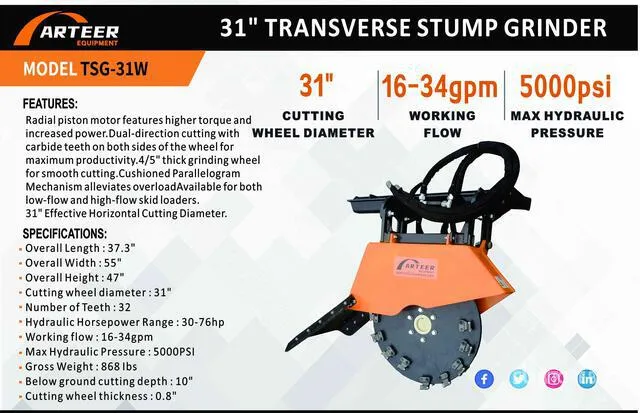 2025 ARTEER TSG-31W 31 in Transverse Skid Steer Stump Grinder (Unused)For Sale by Auction in TexasView bidding page Ritchie Bros. Auctioneers Bidding ended : 1 day ago Item location: Humble, Texas, United States Details Seller Info 2025 ARTEER TSG-31W 31 in Transverse Skid Steer Stump Grinder (Unused) Item Details Lot:N/A Bidding starts at: 2026-01-14T14:00:00.000000Z (GMT) Bidding ends at: 2026-01-17T01:00:00.000000Z (GMT) Auction: Texas Regional Event, USA Ritchie Bros. Auctioneers