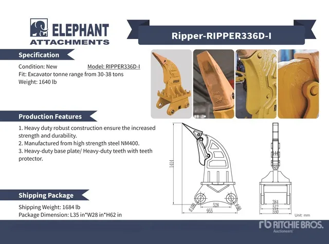 2025 Elephant RIPPER336D-I Excavator Ripper - Fits Cat 336 / 30 - 38 ton (Unused) Item Details