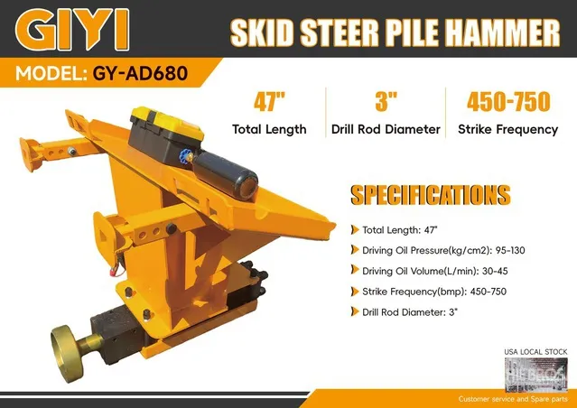 2025 GIYI GY-AD680 Skid Steer Post Driver (Unused)For Sale by Auction in OhioView bidding page Add to Watchlist Ritchie Bros. Auctioneers Bidding starts on: Tuesday 16 December 2025 14:00 Item location: South Vienna, Ohio, United States Details Seller Info 2025 GIYI GY-AD680 Skid Steer Post Driver (Unused) Item Details Lot:N/A Bidding starts at: 2025-12-16T14:00:00.000000Z (GMT) Bidding ends at: 2025-12-18T01:00:00.000000Z (GMT) Auction: Great Lakes Regional Event, USA Ritchie Bros. Auctioneers