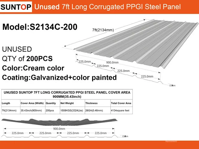 Quantity of (200) 2025 SUNTOP S2134C-200 35 in x 7 ft Corrugated Steel Sheets (Unused)For Sale by Auction in TexasView bidding page Add to Watchlist Ritchie Bros. Auctioneers Bidding starts in: 1 day Item location: Lake Worth, Texas, United States Details Seller Info Quantity of (200) 2025 SUNTOP S2134C-200 35 in x 7 ft Corrugated Steel Sheets (Unused) Item Details Lot:N/A Bidding starts at: 2026-01-14T14:00:00.000000Z (GMT) Bidding ends at: 2026-01-17T01:00:00.000000Z (GMT) Auction: Texas Regional Event, USA Ritchie Bros. Auctioneers