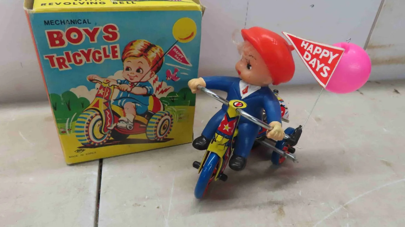 Tin Wind Up Toys : Vintage Wind Up Tricycle , Mechanical Boys Item Details