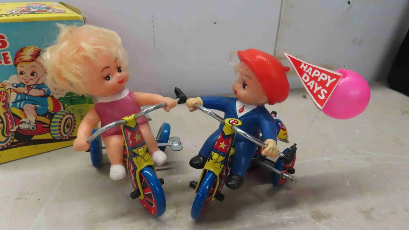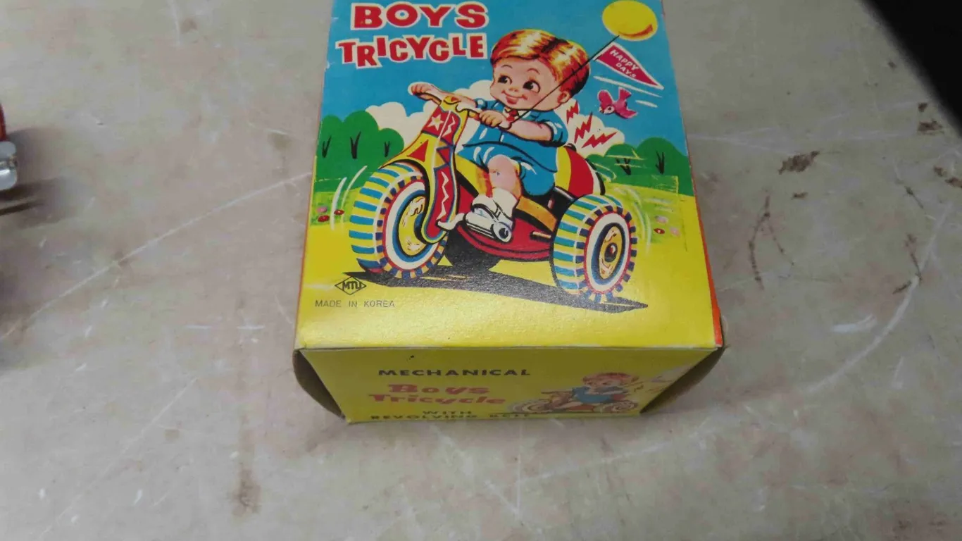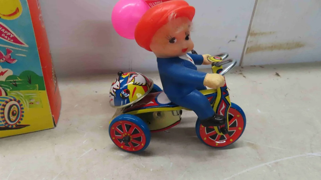 Tin Wind Up Toys : Vintage Wind Up Tricycle , Mechanical Boys